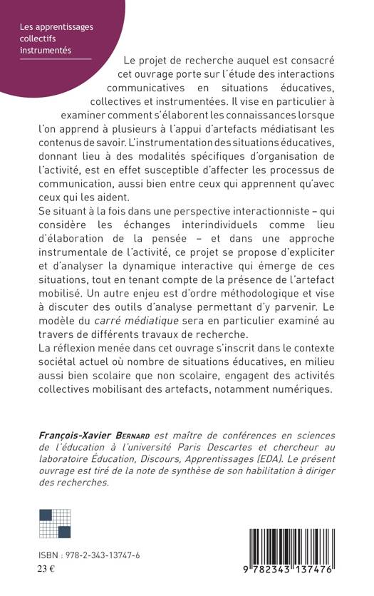 Cet ouvrage s'intéresse aux interactions communicatives en situations éducatives, collectives et instrumentées. Il vise en particulier à examiner comment s'élaborent les connaissances lors de l'apprentissage à plusieurs à l'aide d'artefacts médiatisant les contenus de savoir, en milieu scolaire et non-scolaire.