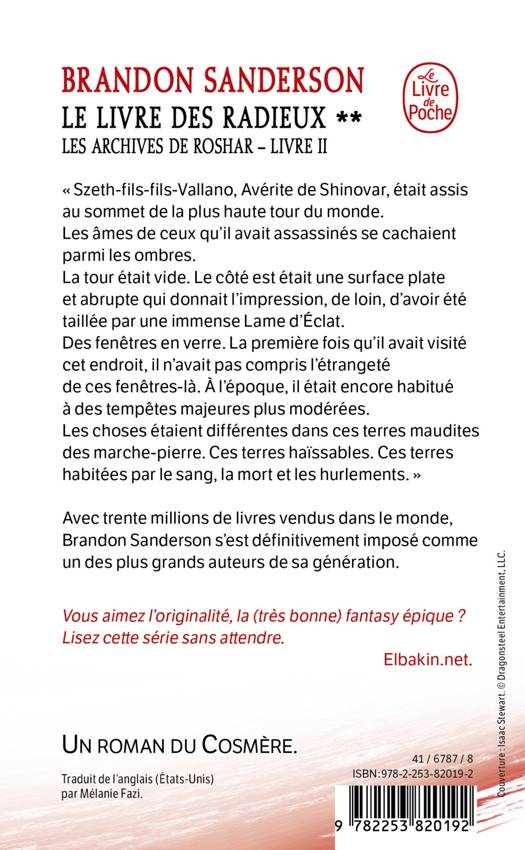 « Szeth-fils-fils-Vallano, Avérite de Shinovar, était assis au sommet de la plus haute tour du monde.