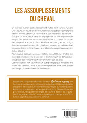 Un exercice mal fait est non seulement inutile, il est surtout nuisible. C’est pourquoi, pour bien monter, il est indispensable de comprendre ce que l’on veut obtenir de son cheval et comment le lui demander. Écrit par un instructeur dans un langage clair, ce livre explique tout ce qu’il faut savoir sur les assouplissements du cheval. En procédant du général au particulier, il les divise en trois grandes catégories – les assouplissements longitudinaux, ceux à partir du cercle et les assouplissements latéraux –, les définit et explique la progression de l’un à l’autre. Pour chaque assouplissement, il détaille son utilité, ses limites, ses exercices préparatoires, la façon de le demander, et les défauts susceptibles d’être rencontrés chez le cheval ou son cavalier. Cet ouvrage est non seulement un outil pédagogique indispensable à tous les cavaliers, mais aussi un complément idéal pour passer ses Galops ou ses examens professionnels.