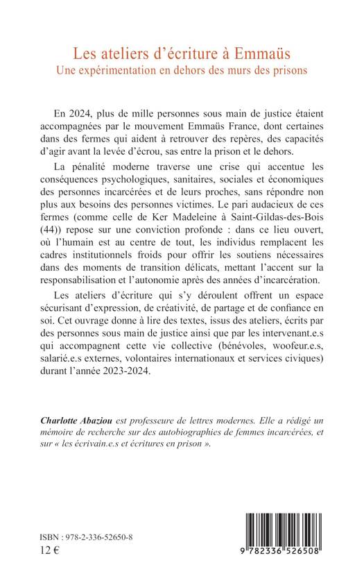En 2024, plus de mille personnes sous main de justice étaient accompagnées par le mouvement Emmaüs France, dont certaines dans des fermes qui aident à retrouver des repères, des capacités d'agir avant la levée d'écrou, sas entre la prison et le dehors. La pénalité moderne traverse une crise qui accentue les conséquences psychologiques, sanitaires, sociales et économiques des personnes incarcérées et de leurs proches, sans répondre non plus aux besoins des personnes victimes. Le pari audacieux de ces fermes (comme celle de Ker Madeleine à Saint-Gildas-des-Bois (44)) repose sur une conviction profonde: dans ce lieu ouvert, où l'humain est au centre de tout, les individus remplacent les cadres institutionnels froids pour offrir les soutiens nécessaires dans des moments de transition délicats, mettant l'accent sur la responsabilisation et l'autonomie après des années d'incarcération. Les ateliers d'écriture qui s'y déroulent offrent un espace sécurisant d'expression, de créativité, de partage et de confiance en soi. Cet ouvrage donne à lire des textes, issus des ateliers, écrits par des personnes sous main de justice ainsi que par les intervenant.e.s qui accompagnent cette vie collective (bénévoles, woofeur.e.s, salarié.e.s externes, volontaires internationaux et services civiques) durant l'année 2023-2024.