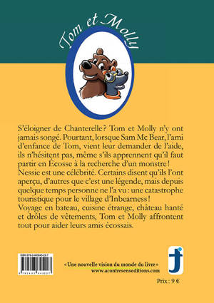 Résumé : S’éloigner de Chanterelle ? Tom et Molly n’y ont jamais songé. Pourtant, lorsque Sam Mc Bear, l’ami d’enfance de Tom, vient leur demander de l’aide, ils n’hésitent pas, même s’ils apprennent qu’il faut partir en Écosse à la recherche d’un monstre ! Nessie est une célébrité. Certains disent qu’ils l’ont aperçu, d’autres que c’est une légende, mais depuis quelque temps personne ne l’a vu : une catastrophe touristique pour le village d’Inbearness ! Voyage en bateau, cuisine étrange, château hanté et drôles de vêtements, Tom et Molly affrontent tout pour aider leurs amis écossais.