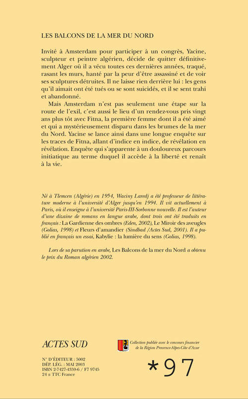 Invité à Amsterdam pour participer à un congrès, Yacine, sculpteur et peintre algérien, décide de quitter définitivement Alger où il a vécu toutes ces dernières années, traqué, rasant les murs, hanté par la peur d'être assassiné et de voir ses sculptures détruites. Il ne laisse rien derrière lui : les gens qu'il aimait ont été tués ou se sont suicidés, et il se sent trahi et abandonné. Mais Amsterdam n'est pas seulement une étape sur la route de l'exil, c'est aussi le lieu d'un rendez-vous pris vingt ans plus tôt avec Fitna, la première femme dont il a été aimé et qui a mystérieusement disparu dans les brumes de la mer du Nord. Yacine se lance ainsi dans une longue enquête sur les traces de Fitna, allant d'indice en indice, de révélation en révélation. Enquête qui s'apparente à un douloureux parcours initiatique au terme duquel il accède à la liberté et renaît à la vie.