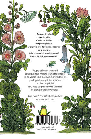 Taupe et Mulot s'aiment plus que tout malgré leurs différences. Ils se voient tous les jours, s'entraident et partagent, au gré des saisons, parties de pêches, séances de peinture en plein air, et bien d'autres aventures !