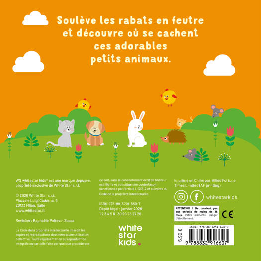 « Soulève le rabat en feutre » est une série de livres interactifs conçue pour stimuler l’éveil sensoriel et la motricité fine des tout-petits. Chaque page propose des rabats en feutre doux à soulever pour révéler des surprises cachées dans des illustrations colorées.
