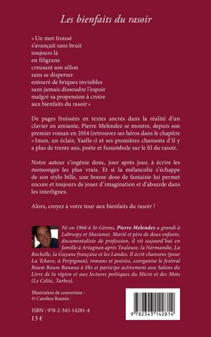 Des pages froissées en textes ancrés dans la réalité d'un clavier en amiante, Pierre Melendez se montre, depuis son premier roman en 2014 et ses première chansons d'il y a plus de trente ans, poète et funambule sur le fil du rasoir. Et si la mélancolie s'échappe de son stylo bille, une bonne dose de fantaisie lui permet encore et toujours de jouer d'imagination et d'absurde dans les interlignes.