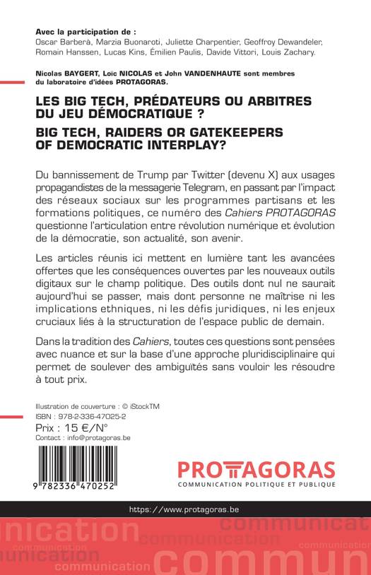 Du bannissement de Trump par Twitter (devenu X) aux usages propagandistes de la messagerie Telegram, en passant par l’impact des réseaux sociaux sur les programmes partisans et les formations politiques, ce numéro des Cahiers PROTAGORAS questionne l’articulation entre révolution numérique et évolution de la démocratie, son actualité, son avenir. Les articles réunis ici mettent en lumière tant les avancées offertes que les conséquences ouvertes par les nouveaux outils digitaux sur le champ politique. Des outils dont nul ne saurait aujourd’hui se passer, mais dont personne ne maîtrise ni les implications ethniques, ni les défis juridiques, ni les enjeux cruciaux liés à la structuration de l’espace public de demain. Dans la tradition des Cahiers, toutes ces questions sont pensées avec nuance et sur la base d’une approche pluridisciplinaire qui permet de soulever des ambiguïtés sans vouloir les résoudre à tout prix.
