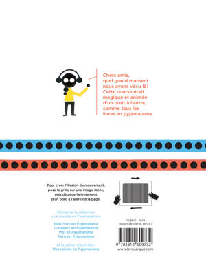 Cette fois-ci, ce sont les billes qui s'animent et se mettent en mouvement pour une course spectaculaire, comme dans la fameuse série « pyjamarama » ! Deux camps s'affrontent, les billes rouges contre les billes bleues. Ça roule particulièrement bien pour les rouges qui sont en tête jusqu'à l'avant dernière page... Mais le suspense reste total ! Reprenant un des principes de base de l'animation en « ombro-cinéma », Michaël Leblond et Frédérique Bertrand s'adressent ici aux plus petits avec une mécanique simple, éprouvée et tellement magique. Les billes ne tiennent pas en place et seront les personnages essentiels d'ouvrages à venir destinés aux plus jeunes lecteurs.