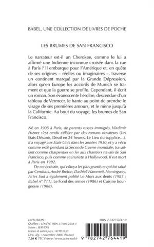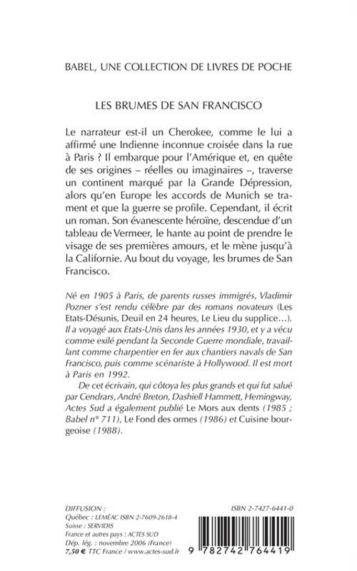 Le narrateur est-il un Cherokee, comme le lui a affirmé une Indienne inconnue croisée dans la rue à Paris ? Il embarque pour l'Amérique et, en quête de ses origines - réelles ou imaginaires -, traverse un continent marqué par la Grande Dépression, alors qu'en Europe les accords de Munich se trament et que la guerre se profile. Cependant, il écrit un roman. Son évanescente héroïne, descendue d'un tableau de Vermeer, le hante au point de prendre le visage de ses premières amours, et le mène jusqu'à la Californie. Au bout du voyage, les brumes de San Francisco.
