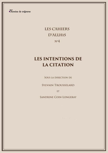 À la lumière des études composant cet ouvrage apparaît l’infinie variété des intentions de la citation : au delà des catégories traditionnelles de l’exempla, de l’auctoritas et de l’ornementatio, la citation sert également à surprendre, à dissimuler comme à révéler, à protéger et surtout à convoquer sous une forme brève une pensée différente, tout un univers conceptuel ou fictionnel autre avec toute sa complexité et ses connotations. Les différents modes d’insertion des citations à l’intérieur de l’oeuvre font preuve d’une liberté aboutissant paradoxalement à faire de la citation un des moyens de créativité poétique, politique ou philosophique.