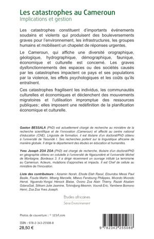 Les catastrophes constituent d’importants événements soudains et violents qui produisent des bouleversements graves pour l’environnement, les infrastructures, les groupes humains. Le Cameroun qui affiche une diversité orographique, géologique, hydrographique, démographique, faunique, économique et culturelle est concerné et les graves dysfonctionnements des espaces ou des sociétés causés par des catastrophes impactent le Cameroun et ses populations par la violence, les effets psychologiques et les coûts qu’ils entraînent. Ces catastrophes fragilisent les individus, les communautés culturelles et économiques des populations et déclenchent des mouvements migratoires et l’utilisation impromptue des ressources publiques ; elles imposent une redéfinition de la planification économique et culturelle.