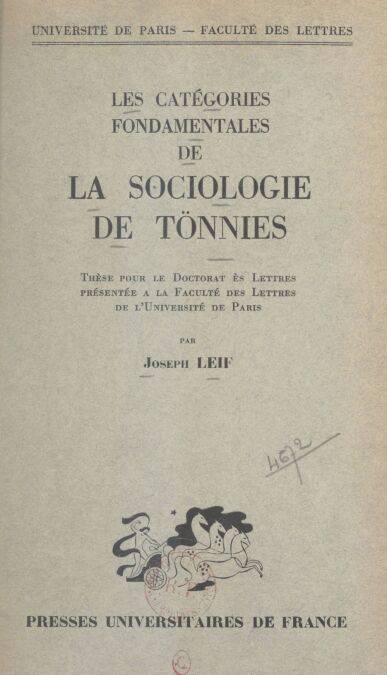 4. Les catégories fondamentales de la sociologie de Tönnies