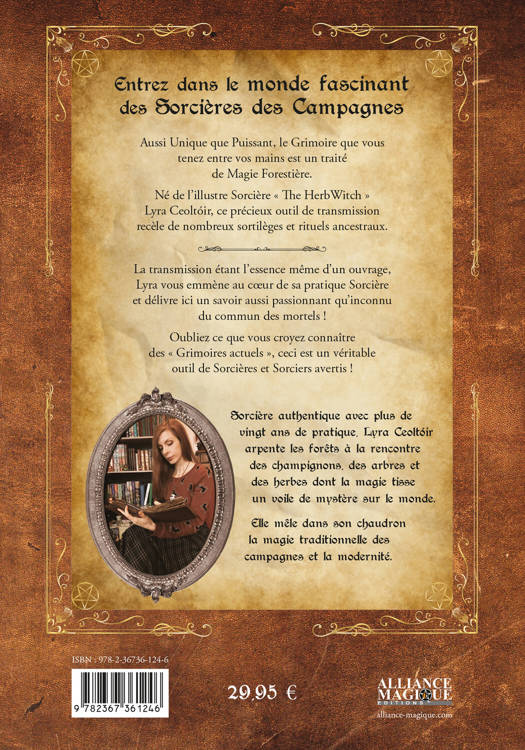 Entrez dans le monde fascinant des Sorcières des Campagnes Aussi Unique que Puissant, le Grimoire que vous tenez entre vos mains est un traité de Magie Forestière. Né de l’illustre Sorcière « The HerbWitch » Lyra Ceoltóir, ce précieux outil de transmission recèle de nombreux sortilèges et rituels ancestraux. ___________________________ La transmission étant l’essence même d’un ouvrage, Lyra vous emmène au cœur de sa pratique Sorcière et délivre ici un savoir aussi passionnant qu’inconnu du commun des mortels ! Oubliez ce que vous croyez connaître des « Grimoires actuels », ceci est un véritable outil de Sorcières et Sorciers avertis ! ___________________________ Sorcière authentique avec plus de vingt ans de pratique, Lyra Ceoltóir arpente les forêts à la rencontre des champignons, des arbres et des herbes dont la magie tisse un voile de mystère sur le monde. Elle mêle dans son chaudron la magie traditionnelle des campagnes et la modernité.