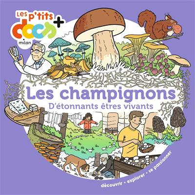 "Les P'tits Docs +", des docs pour lire seul Après "Mes p'tits docs", cette collection est destinée aux enfants qui commencent à lire en autonomie. Plus d'informations, plus de pages, un livre plus grand... mais un documentaire qui se lit toujours comme une histoire. À la fin de l'ouvrage, une planche encyclopédique avec des champignons étonnants : le plus grand, un qui brille dans la nuit, un en forme de corail, des poilus, un qui pousse dans le crottin...