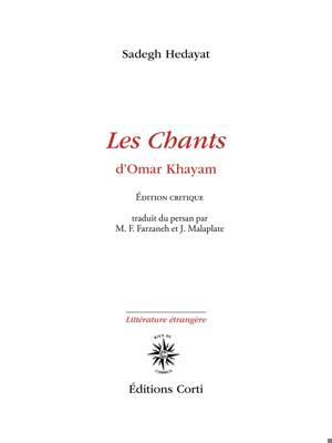 Sadegh Hedayat a entrepris, à partir d’un choix de quatrains d’Omar Khayam, un travail rigoureux, méthodique qui tranche avec les habitudes des hommes de lettes iraniens : en tant qu’essai, Les Chants ont suscité un très grand intérêt dans les milieux intellectuels iraniens et ont fait école. La traduction que M.F. Farzaneh et Jean Malaplate en ont donné devrait contribuer à mieux faire connaître en France l’œuvre du poète persan, comme elle permettra de confirmer la place, l’une des premières, de l’écrivain iranien parmi les novateurs du XXème siècle.