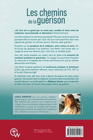 “Ce livre est un grand pas en avant pour combler le fossé entre les médecines conventionnelle et alternative ! » Richard Schwartz Comment expliquer les rémissions spontanées ? Pourquoi certaines personnes guérissent-elles et d’autres pas ? Quel rôle joue notre psychisme dans notre capacité de guérison et comment peut-on favoriser cette guérison ? Enquêtant sur les paradoxes de la médecine, entre science et sacré, afin de trouver les réponses à ses questions, Lissa Rankin s’est lancée dans un voyage de toute une décennie pour nous livrer ce véritable guide. Avec elle, partez enquêter aux quatre coins du globe à la rencontre de nombreux praticiens et guérisseurs. Ce voyage vous permettra d’explorer les ressources et la sagesse des cultures autochtones ainsi que les récentes découvertes scientifiques. Lissa Rankin propose également de nombreuses pratiques et techniques qu’elle juge particulièrement efficaces, issues notamment de l’IFS, l’AIT ou la Somatic Experiencing®. En cheminant ainsi, elle nous invite à devenir les acteurs de notre propre guérison. Sans jamais renier la médecine conventionnelle et ses bienfaits, elle nous fait découvrir ce qu’elle appelle la “médecine sacrée” pour comprendre et traiter nos maux, et trouver notre propre chemin de guérison. Titre original : Sacred Medicine: A Doctor’s Quest to Unravel the Mysteries of Healing.