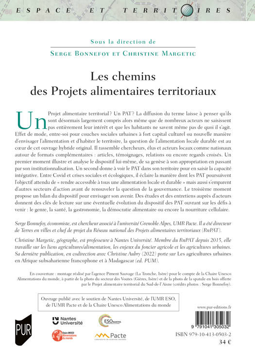 Un Projet alimentaire territorial ? Un PAT ? La diffusion du terme laisse à penser qu’ils sont désormais largement compris alors même que de nombreux acteurs ne saisissent pas entièrement leur intérêt et que les habitants ne savent même pas de quoi il s’agit. Effet de mode, entre-soi pour couches sociales urbaines à fort capital culturel ou nouvelle manière d’envisager l’alimentation et d’habiter le territoire, la question de l’alimentation locale durable est au coeur de cet ouvrage hybride original. Il rassemble chercheurs, élus et acteurs locaux comme nationaux autour de formats complémentaires : articles, témoignages, relations ou encore regards croisés. Un premier moment illustre et analyse le dispositif lui-même, de sa genèse à son appropriation en passant par son institutionnalisation. Un second donne à voir le PAT dans son territoire pour en saisir la capacité intégrative. Entre Covid et crises sociales et écologiques, il éclaire la manière dont les PAT poursuivent l’objectif attendu de « rendre accessible à tous une alimentation locale et durable » mais aussi s’emparent d’autres secteurs d’action avant de renouveler la question de la gouvernance. Le troisième moment propose un bilan du dispositif pour envisager son avenir. Des études et des entretiens auprès d’acteurs donnent des clés de lecture sur une éventuelle évolution du dispositif des PAT ouvrant sur les défis à venir : le genre, la santé, la gastronomie, la démocratie alimentaire ou encore la nourriture cellulaire.