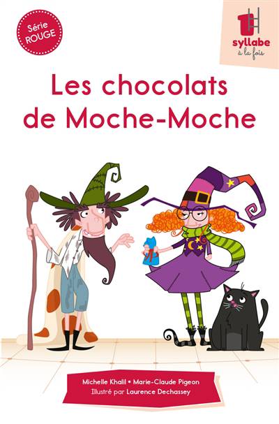 Série rouge C’est la fête de Moche-Moche. Mijote achète du chocolat. Dodu dévore le chocolat. Mijote ne l’a pas vu… Dans ce livre, les mots contiennent : des graphèmes simples : a, e, i, o, l, m, s, etc. le graphème complexe ch des syllabes orales simples : V (voyelle) et CV (consonne, voyelle) des syllabes orales complexes : VC et CVC (dans les mots d’une syllabe ou en fin de mot)
