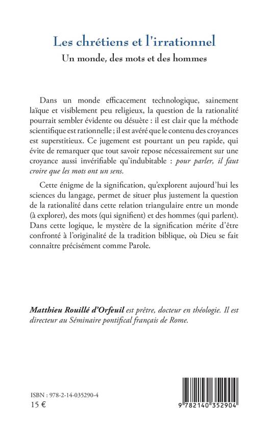 Dans un monde efficacement technologique, sainement laïque et visiblement peu religieux, la question de la rationalité pourrait sembler évidente ou désuète : il est clair que la méthode scientifique est rationnelle ; il est avéré que le contenu des croyances est superstitieux. Ce jugement est pourtant un peu rapide, qui évite de remarquer que tout savoir repose nécessairement sur une croyance aussi invérifiable qu'indubitable : pour parler, il faut croire que les mots ont un sens. Cette énigme de la signification, qu'explorent aujourd'hui les sciences du langage, permet de situer plus justement la question de la rationalité dans cette relation triangulaire entre un monde (à explorer), des mots (qui signifient) et des hommes (qui parlent). Dans cette logique, le mystère de la signification mérite d'être confronté à l'originalité de la tradition biblique, où Dieu se fait connaître précisément comme Parole.