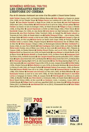 En attendant et sans l'avoir dessiné en amont, ce numéro ressemble à un grand bain bouillonnant de cinéphilie active, à un (joli) raccourci de l'Histoire du cinéma, les films choisis allant de 1927 à 2018. Le panorama est évidemment plein de manques (on ne peut pas retracer toute la légende du 7e Art en seulement quelque 50 films), mais procure néanmoins des émotions vivaces, nous rappelant que nous avons un point commun avec ceux qui font des films, cet amour indépassable du cinéma. Qui est le reflet de nos vies, de nos sentiments, de nos colères, de nos réflexions.