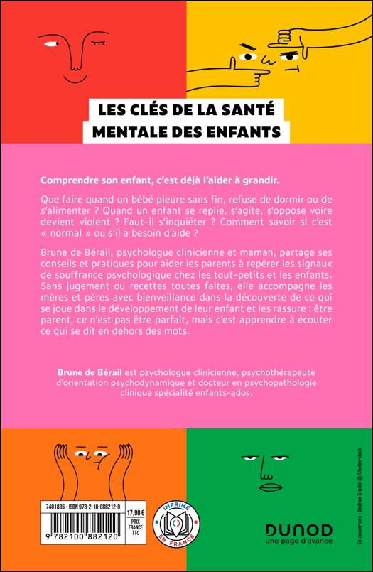 Que faire quand un bébé pleure sans fin, refuse de dormir ou de s’alimenter ? Quand un enfant se replie, s’agite, s’oppose voire devient violent ? Faut-il s’inquiéter ? Comment savoir si c’est « normal » ou s’il a besoin d’aide ? Brune de Bérail, psychologue clinicienne et maman, partage ses conseils et pratiques pour aider les parents à repérer les signaux de souffrance psychologique chez les tout-petits et les enfants. Sans jugement ou recettes toutes faites, elle accompagne les mères et pères avec bienveillance dans la découverte de ce qui se joue dans le développement de leur enfant et les rassure : être parent, ce n’est pas être parfait, mais c’est apprendre à écouter ce qui se dit en dehors des mots.