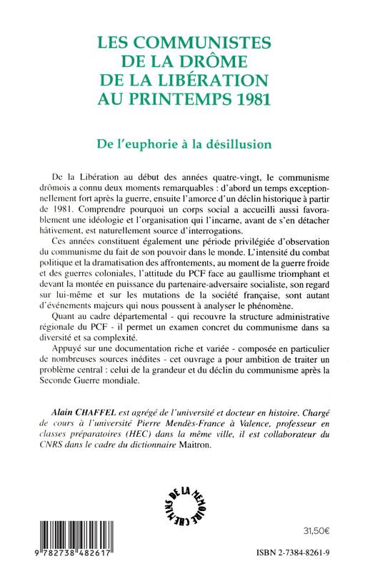 De la Libération au début des années quatre-vingt, le communisme drômois a connu deux moments remarquables : d'abord un temps exceptionnellement fort après la guerre, ensuite l'amorce d'un déclin historique à partir de 1981. Comprendre pourquoi un corps social a accueilli aussi favorablement une idéologie et l'organisation qui l'incarne, avant de s'en détacher hâtivement, est naturellement source d'interrogations.