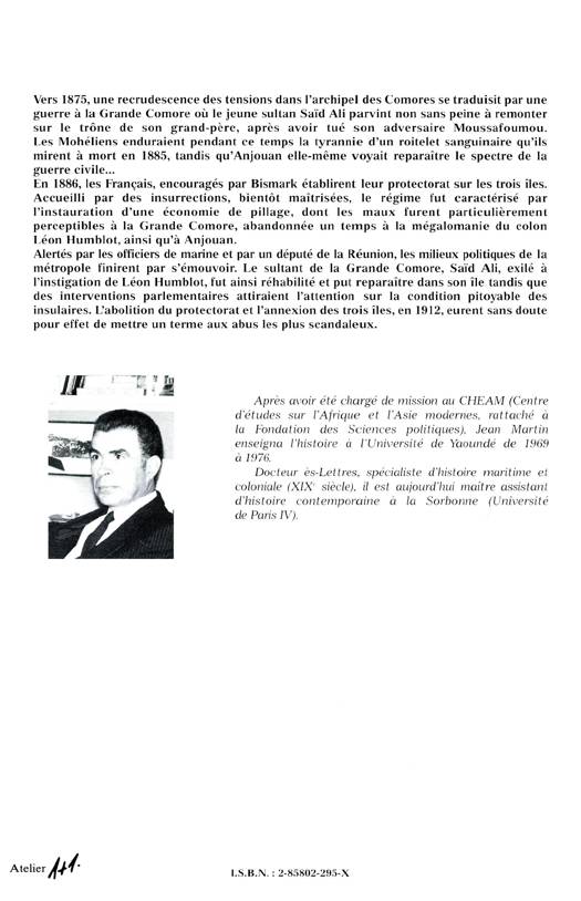 Vers 1875, une recrudescnece des tensions dans l'archipel des Comores se traduisit par une guerre à la Grande Comores où le jeune sultan Saïd Ali parvint non sans peine à remonter sur le trône de son grand-père, après avoir tué son adversaire Moussafoumou. Les Mohéliens enduraient pendant ce temps la tyrannie d'un roitelet sanguinaire qu'ils mirent à mort en 1885, tandis qu'Anjouan elle-même voyait reparaître le spectre de la guerre civile.