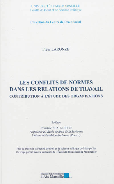 Les conflits de normes ont fait l'objet d'analyses spécifiques dans le cadre du droit international privé, du droit transitoire ou encore de la logique juridique. Ils n'ont pas pour autant été systématisés afin d'extraire les conditions de leur émergence au sein des disciplines juridiques, plus particulièrement le droit du travail et le droit des affaires, et les effets de leur solution sur les situations appréhendées par le droit. Une perspective interdisciplinaire peut, en outre, être retenue. L'étude des conflits de normes envisagée sous l'angle d'une conception pluraliste du droit élargit le problème qu'ils posent traditionnellement et tente de trouver, dans le contexte actuel de la mondialisation, la voie d'une redéfinition de l'articulation des normes et d'un renouvellement du droit. Elle enrichit l'approche du droit déclinée sous forme d'organisations. Ces dernières sont fondées sur des mécanismes et des intérêts et produisent du droit, conformément à la théorie d'Hauriou et de Romano. Dès lors, compte tenu de l'hétérogénéité des intérêts surgissant de toute part sur la scène internationale, les organisations étatiques, privées, européenne, internationales, générant leur propre ordre juridique se confrontent. L'interaction entre les ordres juridiques se matérialise par des conflits de normes qui fragilisent leur autonomie intrinsèque. Leur revendication d'indépendance fait obstacle à l'interdépendance qui caractérise originellement leur relation. Néanmoins, la restauration de l'autonomie et le renforcement de l'interdépendance des organisations sont essentiels afin de garantir l'équilibre entre les intérêts économiques et sociaux, général et particuliers. Ils permettent de maîtriser le conflit de normes qui n'est plus subi mais choisi, ou de le faire disparaître.