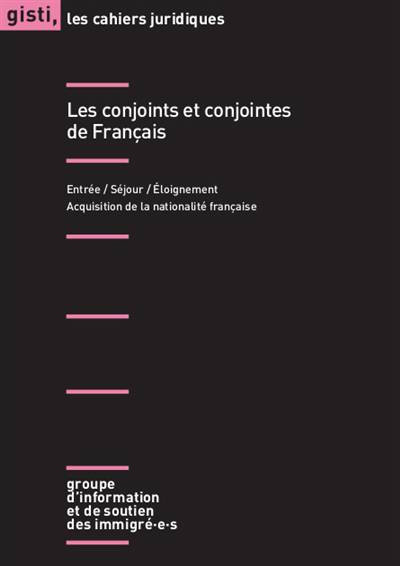 Ce cahier juridique entend présenter de façon claire les droits des étrangères et des étrangers qui ont épousé une personne de nationalité française : de l'entrée à l'éloignement en passant par le séjour en France. Il analyse également le dispositif leur permettant d'acquérir la nationalité française. Force est de noter que l'obtention de la nationalité française est devenue, à l'instar ce qui est prévu en matière de délivrance des titres de séjour, un parcours du combattant, avec son lot d'incertitude et d'arbitraire.
