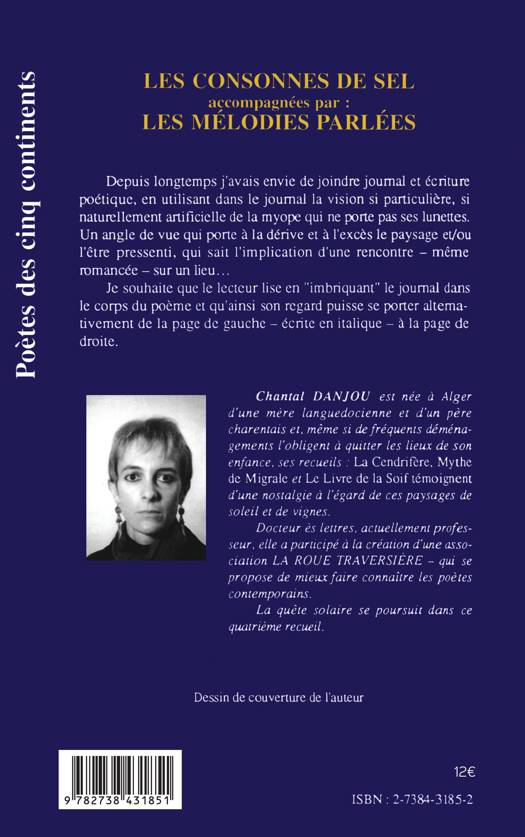Depuis longtemps, Chantal Danjou a eu envie de joindre journal et écriture poétique, en utilisant dans le journal la vision si particulière, si naturellement artificielle de la myope qui ne porte pas ses lunettes, un angle de vue qui porte à la dérive et à l'excès le paysage et/ou l'être pressenti, qui sait l'implication d'une rencontre...
