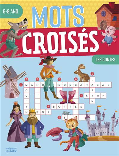 Des mots croisés pour s'amuser avec les trois petits cochons, Pinocchio, le chat botté, Blanche-Neige...