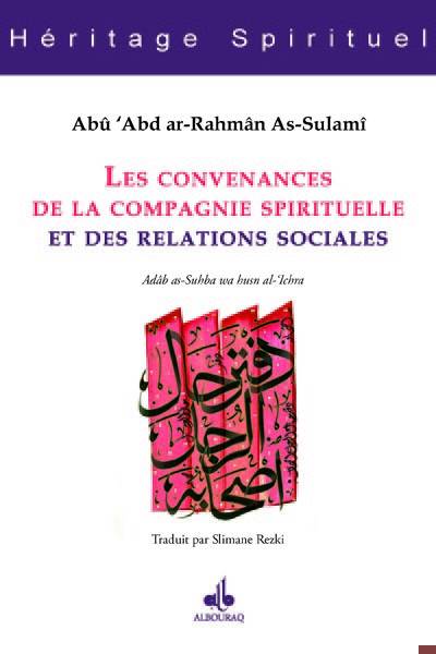 Les convenances de la compagnie spirituelle et des relations sociales - (titre en arabe : Adâb as-Suhba wa husn al-'Ichra). Genre particulier, la littérature de l'Adâb (des convenances) est très répandue. Ce livre a la particularité d'être un des premiers du genre. Savant et maître spirituel du quatrième siècle, Sulamî s'inscrit dans la catégorie des codificateurs. Ici il passe en revue les fondements du compagnonnage sous tous ses aspects. Il donne 92 définitions de convenances à autant de relations possibles. Il nous rappelle toute l'éthique des premiers musulmans et donc ce qui fit de l'islam une voie de beauté, de bonté et d'amour. Le maître mot de ces relations est l'amour, celui de Dieu et de Son Prophète bien entendu, mais aussi de son semblable. Sans respect, sans bonté, sans miséricorde à l'égard de son prochain, pas d'islam possible. C'est comme l'auteur nous le rappelle l'oubli de cet impératif qui, à partir du quatrième siècle, engendra une dégénérescence de l'islam du commun.