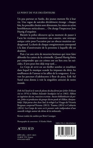 «Les Corps de verre» est un thriller sombre et troublant dans lequel la musique scande les impasses du désir, les souffrances de l'amour et les affres de la vengeance. À travers les parcours d'adolescents à fleur de peau, Erik Axl Sund nous donne à voir la singulière atrocité de notre monde.