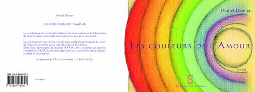 Cette mise en histoire de l’action des flammes de couleurs qui permettent de réaliser AYAM, est une nouvelle collaboration avec l’auteur, Daniel Danner, rencontré dans la préface de « Saint Germain le Livre des Appels », initiateur à la Flamme Violette, que vous pouvez retrouver et questionner sur le site : www.paradoxeoriginel.eu ou il explicite la création du monde en détail et en couleurs. L’artiste Fabienne Martin auteur du livre « De Retour Carnet de voyages intérieurs » et des dessins à colorier dont le « Mandala avec tout dedans » s’est ici mise en harmonie avec les textes, illustrant au plus prêt les couleurs de l’amour avec son âme. « Il était une fois un océan de bonheur… » … ou comment raconter la création aux petits et aux grands afin de leur rappeler qui nous sommes vraiment. Vision symbolique du voyage des âmes, de leur origine à leur libération, en forme d’histoire toutes simples où la vie jaillit des dessins aux couleurs vibrantes Suivent cinq petits contes plein d’humour. « Les couleurs de l’amour » un livre pétillant qui s’adresse à l’innocence en chacun Dos de couverture Les flammes divines et l'action de leurs couleurs permettent de sortir de l'illusion de n'être qu'un individu séparé des autres. Elles nous permettent de réaliser AYAM, mot sanskrit qui signifie simplement CELA, la présence éternelle et la suite d'instants uniques relatifs et changeants. La réponse de l'Être à lui-même, JE SUIS AYAM
