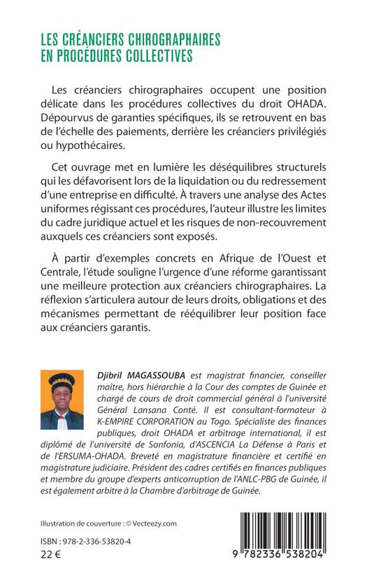Les créanciers chirographaires occupent une position délicate dans les procédures collectives du droit OHADA. Dépourvus de garanties spécifiques, ils se retrouvent en bas de l'échelle des paiements, derrière les créanciers privilégiés ou hypothécaires. Cet ouvrage met en lumière les déséquilibres structurels qui les défavorisent lors de la liquidation ou du redressement d'une entreprise en difficulté. À travers une analyse des Actes uniformes régissant ces procédures, l'auteur illustre les limites du cadre juridique actuel et les risques de non-recouvrement auxquels ces créanciers sont exposés. À partir d'exemples concrets en Afrique de l'Ouest et Centrale, l'étude souligne l'urgence d'une réforme garantissant une meilleure protection aux créanciers chirographaires. La réflexion s'articulera autour de leurs droits, obligations et des mécanismes permettant de rééquilibrer leur position face aux créanciers garantis.