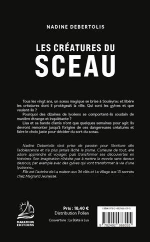 Tous les vingt ans, un sceau magique se brise à Souleyrac<br /> et libère les créatures dont il protégeait la ville. Qui sont<br /> les gylves et que veulent-ils ?<br /> Pourquoi des dizaines de lycéens se comportent-ils<br /> soudain de manière étrange et inquiétante ?<br /> Lisa et sa bande d’amis n’ont que quelques semaines pour<br /> agir. Ils devront remonter jusqu’à l’origine de ces<br /> dangereuses créatures et faire le choix juste pour décider<br /> du sort du sceau.