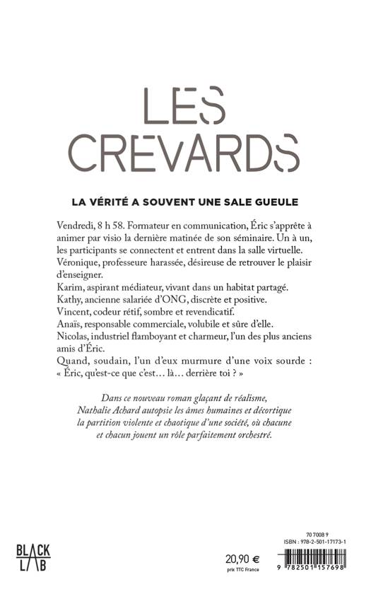 Vendredi, 8 h 58. Formateur en communication, Éric s’apprête à animer par visio la dernière matinée de son séminaire. Un à un, les participants se connectent et entrent dans la salle virtuelle. Véronique, professeure harassée, qui aspire à retrouver le plaisir d’enseigner. Karim, aspirant médiateur, vivant dans un habitat partagé. Kathy, ancienne salariée d’ONG, discrète et positive. Vincent, codeur rétif, sombre et revendicatif. Anaïs, responsable commerciale, volubile et sûre d’elle. Nicolas, industriel flamboyant et charmeur, l’un des plus anciens amis d’Éric. Quand, soudain, l’un d’eux murmure d’une voix sourde : « Éric, qu’est-ce que c’est… là… derrière toi ? »