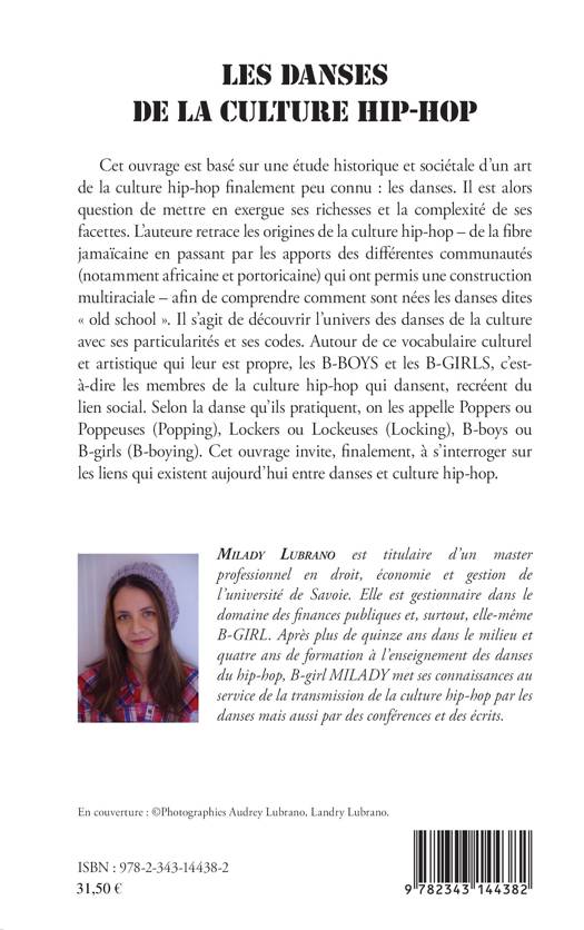 Quels liens existe-il entre danses et culture hip-hop ? A travers une étude historique et sociétale de cet art, l’auteure retrace les origines de la culture hip-hop, pour nous faire découvrir l’univers des danses hip-hop, avec ses particularités et ses codes. Autour de ce vocabulaire culturel et artistique qui leur est propre, les membres de la culture hip-hop - appelés B-BOYS et les B-GIRLS - recréent du lien social.