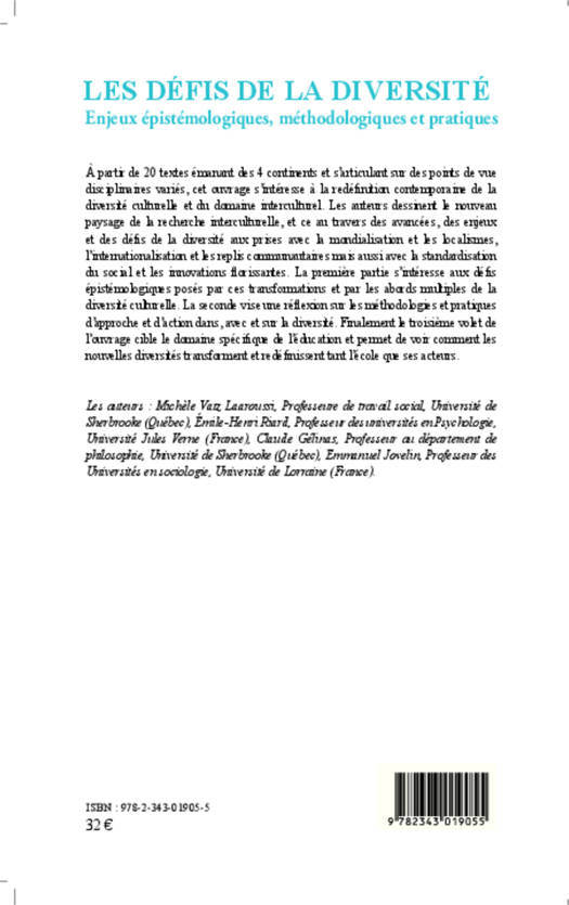 A partir de 20 textes émanant des 4 continents et s'articulant sur des points de vue disciplinaires, cet ouvrage s'intéresse à la redéfinition contemporaine de la diversité culturelle et du domaine interculturel. Les auteurs dessinent le nouveau paysage de la recherche interculturelle, et ce au travers des avancées, des enjeux et des défis de la diversité aux prises avec la mondialisation et les localismes, l'internationalisation et les replis communautaires mais aussi avec la standardisation du social et les innovations florissantes...