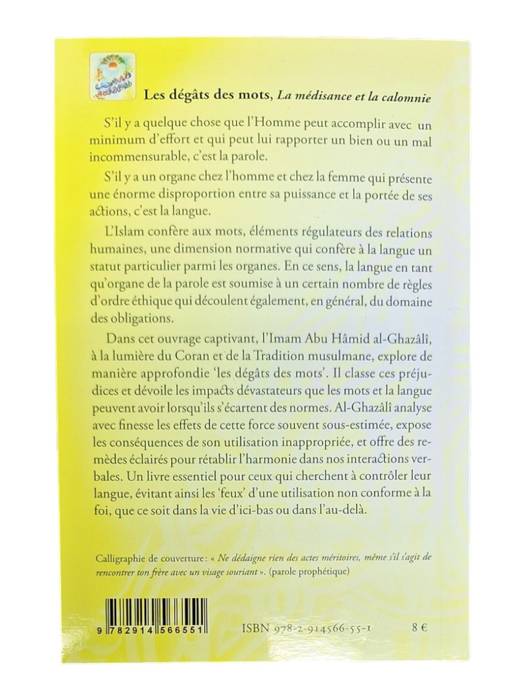 A la lumière du Coran et de la tradition, l'auteur classe les dégâts de la langue et des mots quand ceux-ci sortent des normes, il analyse leurs effets, expose leurs conséquences et leur donne des remèdes.