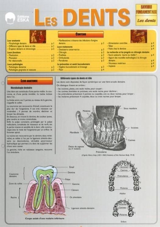 En termes simples et précis, prenant appui sur les données scientifiques et illustré de croquis, ce document est destiné à faire prendre conscience de l'importance de l'hygiène dentaire et des moyens de préserver la santé des dents.