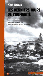 Écrite entre 1915 et 1919, cette pièce donne à voir une action éclatée en centaines de tableaux et une foule de personnages sans héros. L’auteur fut poursuivi pour pacifisme quelques mois avant la fin de la guerre. Pourtant, « les faits mis en scène ici se sont réellement produits ; les conversations les plus invraisemblables ont été tenues mot pour mot ; les inventions les plus criardes sont des citations ; la chronique a reçu une bouche, de grandes phrases sont plantées sur deux jambes – et bien des hommes n’en ont plus qu’une »…