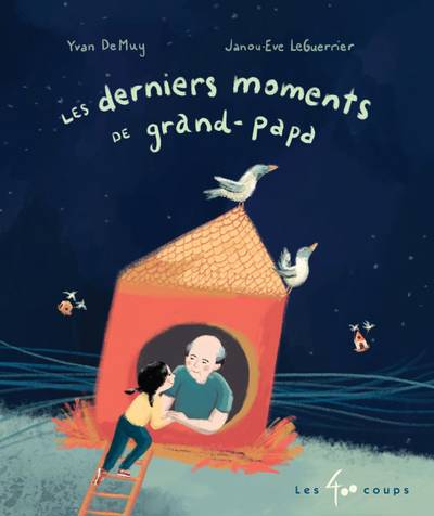 part sereinement. Dans ses illustrations, Janou-Ève LeGuerrier crée un univers poétique qui présente un " ailleurs " symbolique réconfortant, parsemé de maisonnettes tirées par des oiseaux. Voici un album empreint