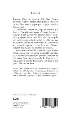 Turquie, début des années 1900. Ziya n'a que seize ans lorsqu'il abat en plein tribunal l'assassin de son frère aîné, et gagne par ce geste l'admiration de tous. Condamné à perpétuité, ce jeune homme que la mort n'inquiète pas impose d'emblée le respect. C'est en prison qu'il se met à jouer aux dés - habitude qui jalonnera le reste de sa vie. Un an après son incarcération, il est exfiltré vers l'Égypte par les soutiens politiques de son clan. Là commence son apprentissage des choses de la vie : l'amour, l'argent, le pouvoir, les attentats politiques. Après son inoubliable "Madame Hayat", Ahmet Altan explore dans ce roman le caractère ambigu d'un homme qui tout enfant apprend à refouler ses émotions. Personnage insondable, Ziya incarne l'engagement absolu de ceux qui sont prêts à tout pour défendre les leurs.