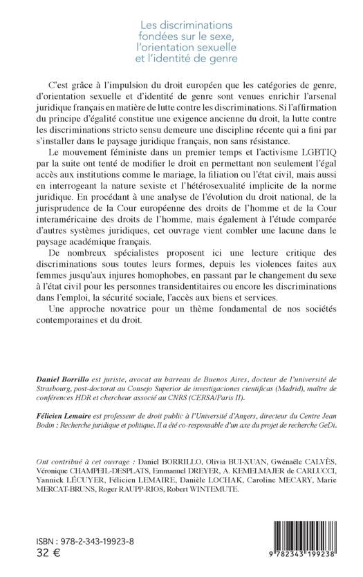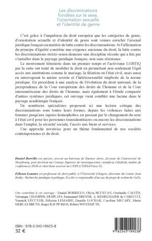 Grâce au droit européen, le genre, l'orientation sexuelle et l'identité de genre ont enrichi l'arsenal juridique français. Si l'affirmation du principe d'égalité constitue une exigence ancienne, la lutte contre les discriminations est récente. Le mouvement féministe et l'activisme LGBTIQ ont tenté de modifier le droit en permettant non seulement l'égal accès aux institutions (mariage, filiation ou état civil), mais aussi en interrogeant la nature sexiste et l'hétérosexualité implicite de la norme juridique. En analysant l'évolution du droit national, des jurisprudences des Cours européenne et interaméricaine des droits de l'homme, mais également à l'étude comparée, cet ouvrage vient combler une lacune dans le paysage académique français : y sont abordés les violences faites aux femmes, les injures homophobes, ou le changement du sexe à l'état civil.