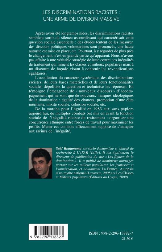 Les "nouveaux discours" sur l'égalité des chances, la promotion d'une élite méritante, la mixité sociale, ou encore la cohésion sociale sont les nouveaux masques idéologiques de la domination. De la marche pour l'égalité en 1983 aux sans-papiers aujourd'hui, de multiples combats ont mis en avant la fonction sociale de l'inégalité raciste de traitement : organiser une concurrence ethnique entre force de travail pour maximiser les profits. Mener ces combats efficacement suppose de s'attaquer aux racines de l'inégalité.
