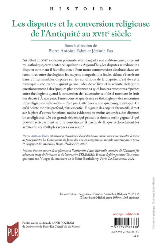 Au début du XVIIe siècle, un polémiste averti lançait à son auditoire, mi-protestant mi-catholique, cette sentence lapidaire : « Aujourd'huy, les disputes se réduisent à disputer comment il faut disputer. » Pour notre controversiste désabusé, dans ces rencontres entre théologiens, les moyens mangeaient la fin, les débats s'éternisant dans d'interminables disputes sur les conditions de la dispute. C'est de cette remarque - récurrente - qu'ont germé l'idée de ce livre et la volonté d'élargir le questionnement à des époques plus anciennes : à quoi bon ces rencontres répétées entre théologiens quand la conversion de l'adversaire semble si rarement le fruit des débats ? À nos yeux, l'amer constat que dresse ce théologien - des rencontres interreligieuses infécondes - n'est pas à attribuer à une quelconque myopie. Ce qu'il pointe est plus profond, plus essentiel. Il signale des enjeux alternatifs, il met sur la piste d'autres fonctions, moins évidentes ou moins assumées, des disputes interreligieuses. De ces grands débats, qui pensait vraiment sortir gagnant ? qui pouvait sérieusement se dire convaincu ? À partir de là, que recherchaient les acteurs de ces multiples scènes sans issue ?
