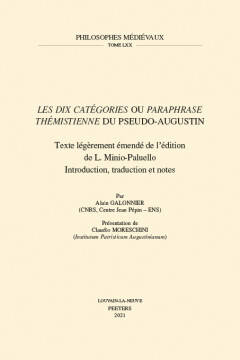 Les Categoriae decem, redigees au cours du IVe siecle ap. J.-C., inaugurent la tradition du commentarisme latin. Redigees par un contemporain de Themistius, leur auteur entend y fournir une traduction de la paraphrase de ce dernier, a ce jour perdue en toute autre langue, sur le premier traite de l'Organon d'Aristote. Outre son importance pour la reconstitution d'une partie de la pensee themistienne, cet ouvrage presente aussi l'interet de proposer, avant Martianus Capella et Boece, une version latine presque complete des Categories du Stagirite, qui vient enrichir le fonds lexical et semantique des equivalences greco-latines en matiere de dialectique aristotelicienne, tout en alimentant et en diversifiant l'exegese la concernant.