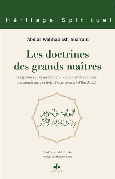 Abd al Wahhâb ash Sha'rânî est un grand métaphysicien musulman. Né au Caire en 1493 (899 H.), Sha'rânî fut le témoin de l'apogée ottomane. Auteur prolixe, il écrivit de nombreux livres touchant tant à l'exotérisme qu'à l'ésotérisme. Il fut surtout un maître spirituel et vivificateur des sciences de son époque. Il mourut en 1565 (973 H), et fut inhumé au Caire. Idrîs de Vos est enseignant d'arabe et de tafsîr (commentaire du Coran). Issu d'une famille convertie à l'islam, diplômé en Sorbonne, il est plongé dans l'univers de la spiritualité musulmane et de la philosophie depuis sa plus tendre enfance. Spécialiste du soufisme et auteur prolixe, il a publié plus d'une trentaine d'études ou de traductions traitant aussi bien de la mystique que de la théologie. Dans son dernier ouvrage, « L'amour universelle, un cheminement soufi »