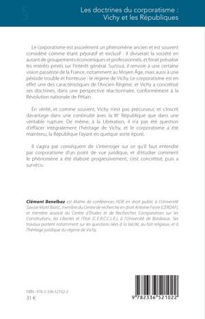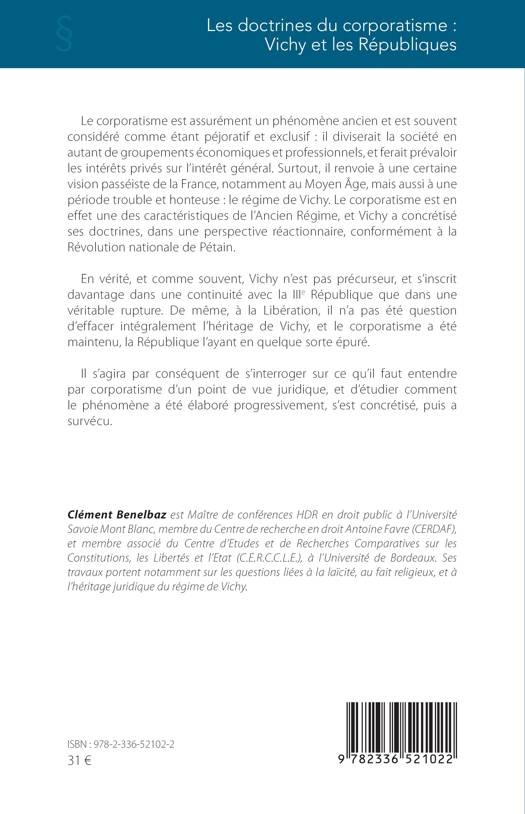 Le corporatisme est assurément un phénomène ancien et est souvent considéré comme étant péjoratif et exclusif : il diviserait la société en autant de groupements économiques et professionnels, et ferait prévaloir les intérêts privés sur l’intérêt général. Surtout, il renvoie à une certaine vision passéiste de la France, notamment au Moyen Âge, mais aussi à une période trouble et honteuse : le régime de Vichy. Le corporatisme est en effet une des caractéristiques de l’Ancien Régime, et Vichy a concrétisé ses doctrines, dans une perspective réactionnaire, conformément à la Révolution nationale de Pétain. En vérité, et comme souvent, Vichy n’est pas précurseur, et s’inscrit davantage dans une continuité avec la IIIe République que dans une véritable rupture. De même, à la Libération, il n’a pas été question d’effacer intégralement l’héritage de Vichy, et le corporatisme a été maintenu, la République l’ayant en quelque sorte épuré. Il s’agira par conséquent de s’interroger sur ce qu’il faut entendre par corporatisme d’un point de vue juridique, et d’étudier comment le phénomène a été élaboré progressivement, s’est concrétisé, puis a survécu.