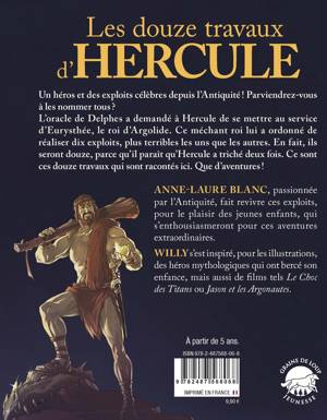 Un héros et des exploits célèbres depuis l'Antiquité ! Parviendrez-vous à les nommer tous ? L'oracle de Delphes a demandé à Hercule de se mettre au service d'Eurysthée, le roi d'Argolide. Ce méchant roi lui a ordonné de réaliser dix exploits, plus terribles les uns que les autres. En fait, ils seront douze, parce qu'il paraît qu'Hercule a triché deux fois. Ce sont ces douze travaux qui sont racontés ici. Que d'aventures !
